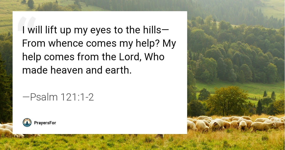 I will lift up my eyes to the hills— From whence comes my help? My help comes from the Lord, Who made heaven and earth.