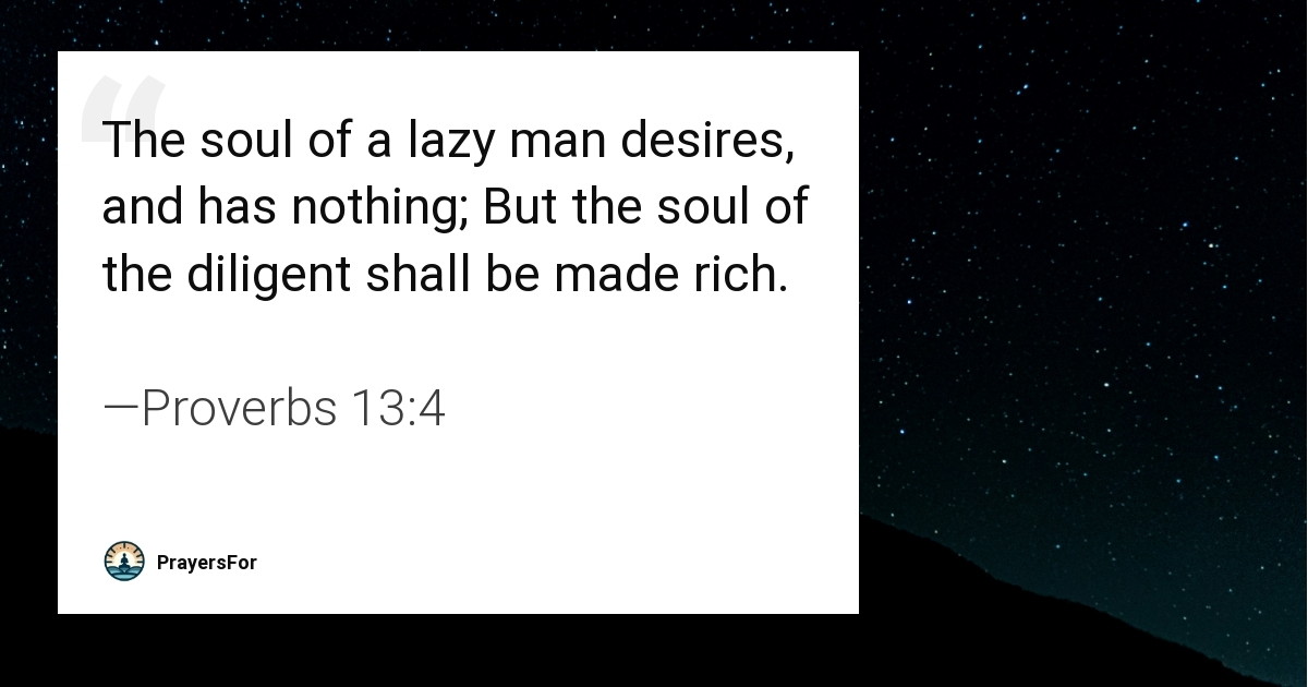 The soul of a lazy man desires, and has nothing; but the soul of the diligent shall be made rich.
