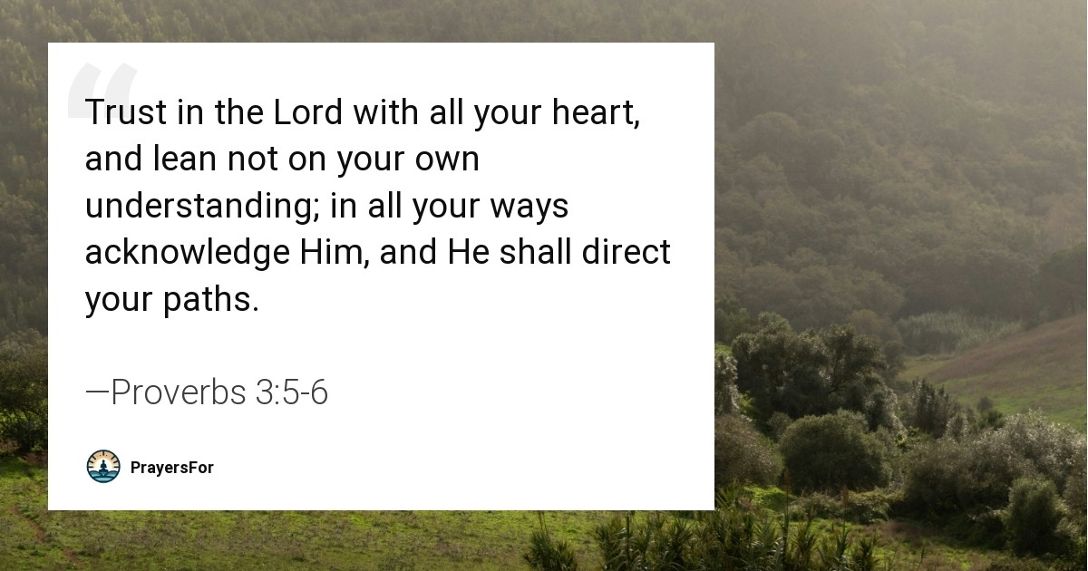Trust in the Lord with all your heart, and lean not on your own understanding; In all your ways acknowledge Him, and He shall direct your paths.
