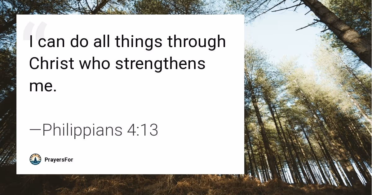 Meaning: What if you believed that you have a source of strength that empowers you to overcome any obstacle? Let this verse remind you that you are equipped to navigate life's challenges with grace and confidence.
