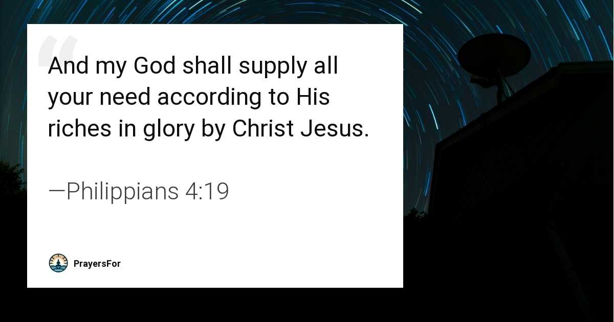 And my God shall supply all your need according to His riches in glory by Christ Jesus.